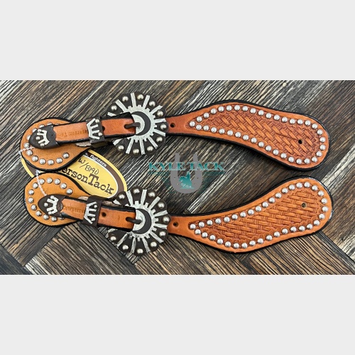 Narrow Antiqued Scallop Light Dot Spur Straps