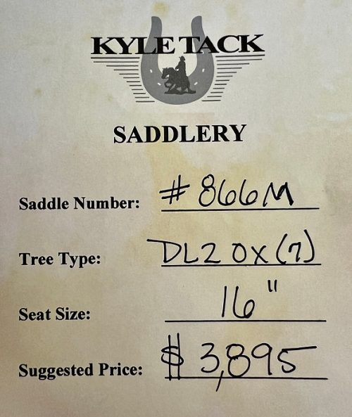 Please contact Kyle Tack for any additional questions. More pictures are available upon request. Detailed Saddle Information Below. Please see our POLICIES Tab for additional saddle information regarding Disclaimers, Warranties, & Returns. All New Saddles come w/ a New Kyle Tack Saddle Bag.