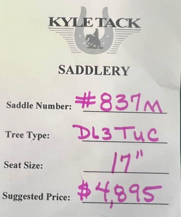 Please contact Kyle Tack for any additional questions. More pictures are available upon request. Detailed Saddle Information Below. Please see our POLICIES Tab for additional saddle information regarding Disclaimers, Warranties, & Returns. All New Saddles come w/ a New Kyle Tack Saddle Bag.