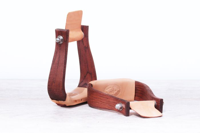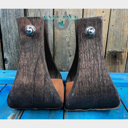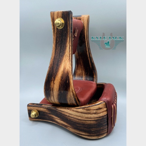 Nettles Wood Stirrups – The Chisholm – 2" Flatbottom – Unvarnished Rustic Mahogany Cherry Stain – Perfect Every Day Work Stirrup – *Kyle Tack's Choice for New Saddles*