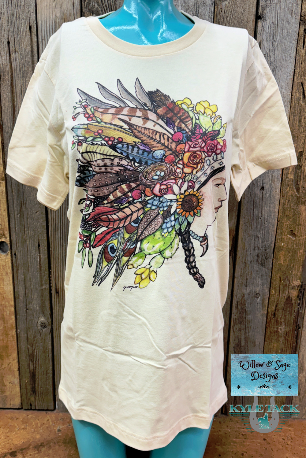 XOXO Tee with Headdress on a cream color shirt